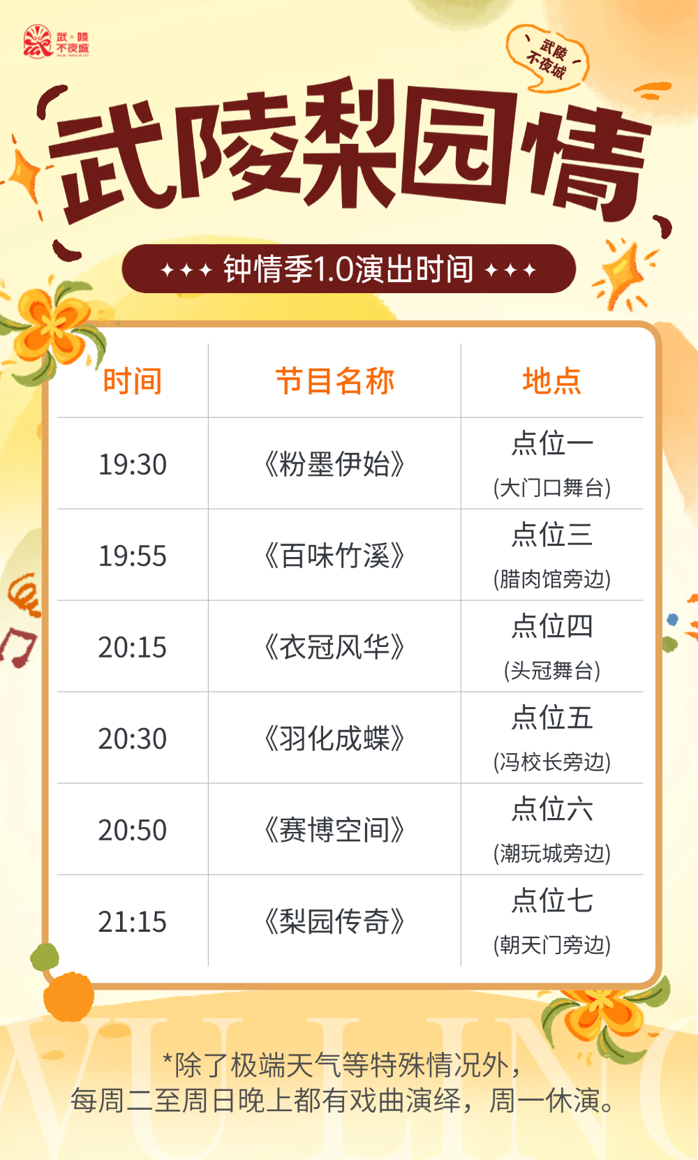 注:即日起至10月31日武陵不夜城將持續演繹(周一不休演),每晚7:30不見不散!
